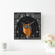 Whimsical Boho Owl & Tropical Monstera Leaf Quadratische Wanduhr