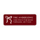 Teilen Sie Urlaub jubeln bis zu den Details mit diesen Weihnachtsfeiern Rücksendeadressen-Aufkleber. Ein cremefarbener, handgezeichnet Bogen betont einen klassischen Cranberry-Hintergrund. Familienname und Rücksendeadresse werden in cremefarbenen Buchstaben dargestellt. Ideal, um Weihnachtskarten, Einladungen und Urlaubssbriefe mit einer stilvollen saisonalen Touch zu versehen.