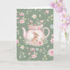 Whimsical Bunny Green Teapot Floral Easter Karte