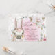 Whimsikisches Kaninchen Babydusche Einladungen mit bezauberndem Baby-Hasen mit hübschen Blume in ihren Haaren auf einem wunderschönen Vintagen, blumenfarbenen Aquarell. Diese bezaubernden, sonnigen Babyduschen-Einladungen lassen sich einfach durch das Hinzufügen von Details für Ihre Veranstaltung anpassen.