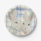 Whimsical Bunny Rabbits Blaues Kariertes Ostern Pappteller