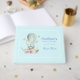 Gästebuch für Babydusche. Entworfen mit einer charmanten Illustration eines kleinen sonnigen Reitens entlang in einem Heißluftballon mit extravagantem rosa Band, zusammen mit einigen Blume und Schmetterlingen. Der pastellblaue Hintergrund verleiht ihm ein Vintages Traumgefühl.