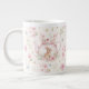 Whimsical Bunny Teapot Floral Spring Giant Coffee Mug. This design features a delightful whimsical bunny nestled within a pink teapot, surrounded by spring blossoms and green foliage. This floral pattern brings a touch of spring magic to your everyday sips. Perfect for tea, coffee, or hot cocoa, it makes a delightful gift for Easter, Mother's Day, birthdays, or any occasion for a bunny lover.