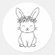 Whimsical Bunny with Floral Crown Line Art Runder Aufkleber