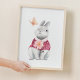 Dekorieren Sie Ihr kleines geliebtes Kind mit einem niedlichen, weißfarbenen Kaninchen mit kariertem Shirt, mit Blume und Schmetterlingswald. Es ist perfekt für Kinderzimmer, Schlafzimmer und Spielzimmer. Holzkunstdrucke. Fügen Sie etwas naturbelassenes Tier in Ihrem Baby-Kleinkindzimmer hinzu, gute Ideen für Waldland, geboren als Wild-Kinderzimmer-Thema. Es sind geschlechtsneutrale Kinderzimmer-Drucke.