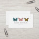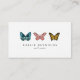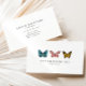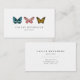 Einfache und elegante Visitenkarte mit Abbildung von drei verschiedenen Schmetterlingen in den Farben Blau, Rosa und Gelb. Großartiges Design für Designer, Nagelkünstler oder andere Schönheitsberufe.