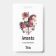 Name tag with a cute retro style carousel horse. Drawn in Pretty pink colors with fancy flowers.