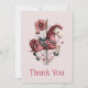 Thank you card with a cute retro style carousel horse. Drawn in Pretty pink colors with fancy flowers.