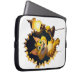 Whimsical Cartoon Cat Holen einer Lampe durch eine Laptopschutzhülle