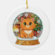Whimsical Cartoon Cat in Snow Globe Christmas Keramik Ornament