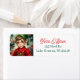 A sweet Christmas return address label with a cute elf cartoon and a festive background.