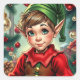 Whimsical Cartoon Elf | Christmas Quadratischer Aufkleber