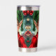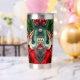 A sweet Christmas tumbler with a cute elf cartoon and a festive background.