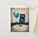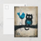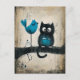 Whimsical Cat and Bird auf einer Zweigstelle Postkarte