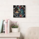 Whimsical Cat Forging Weapys in Fantasy Workshop Quadratische Wanduhr