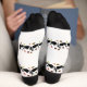 Whimsical Cat Line Art with Autumn Leaves Socks - Delicate black outline of playful cats with a fall leaf motif, perfect for autumn-themed clothing and cat lovers seeking charming, unique designs.