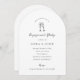 Diese trendigen und dennoch eleganten, bogenförmigen Einladungen für eine Hochzeitsfeier in Schwarz/Weiß sind modern und minimalistisch mit handgeschriebener Schrift und klassischem Text. Eine einfache, von Hand gezeichnet, skurrile Illustration von Champagnergläsern verleiht Ihrem stilvollen Verlobungsteam einen neuen Look.