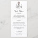 Add a touch of whimsical elegance to your wedding reception with this delightful dinner menu. The design showcases a charming hand-drawn chandelier illustration at the top and a sweet depiction of a decorated cake at the bottom, evoking a sense of celebration and indulgence. The playful script font for "Dinner Menu" adds a personal and inviting feel, making it ideal for couples seeking a menu that is both sophisticated and heartwarming. This menu card is perfect for announcing your delicious courses, from appetizers to desserts, ensuring every detail of your wedding feast is beautifully presented.