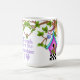 Beginnen Sie Ihren Morgen mit einer positiven Erinnerung, wenn Sie diese wunderschöne Whimsical Checkerboard Birdhouse Tasse benutzen. Whimsical Checkerboard Birdhouse ist eine bezaubernde und farbenfrohe Illustration von Debi Payne Designs. Diese Abbildung zeigt ein skurriles Vogelhaus mit lila und aquamarinem Akzent, in dem mehrere doodle Blume über einer schwarz-weißen Schachbrettlinie sitzen. Das Vogelhaus hängt in einem Baum mit mehreren grünen Blätter durch eine delikate Bug Krawatte lila Band. Auf einem Baum stehen zwei kleine Tweedie-Vögel, die in der Luft fliegen. Die Abbildung zu inszenieren ist das handgeschriebene positive Sprichwort, das lautet: "Freunde sind das Sonnenlicht des Lebens."
