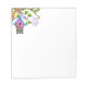 Keep hat positive reminder near by when you use this incredible Whimsical Checkerboard Birdhouse Notepad. Whimsical Checkerboard Birdhouse is a charming and colorful illustration created by Debi Payne Designs. This illustriert Feature a whimsical birdhouse of purple and teal accented with multiple doodle flowers sitting above a black and white checkerboard border base. The birdhouse is hanging in a tree with multiple green leaves by a delicate bow tie purple ribbon. Perched, wir haben tree limb and flying in the air are two little Tweedie birds. Accenting the illustration is the hand-lettering posisaying that reads, "Friends are the sunshine of life". The illustration and text are all over a sky-blue watercolor wash background.