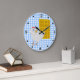 Fun Küchenwanduhr in einem blau-weißen Gingham Tischtuch-Look Muster, mit schwarzen Zahlen und Punkten, um den Rand. Die Cartoon-Grafik eines großen Waffels und ein kleines weißes Huhn schmückt das Gesicht der Uhr. Anpassen, um jeden gewollt Text hinzuzufügen. Das ist eine lustige Geschenkidee für jeden südlich-gastronomischen Liebhaber.