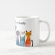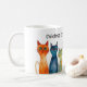 Whimsical aquamarin orange und lila Katzen auf dieser lustigen Kaffee- oder Kakao-Tasse für die kinderlose Katzenfrau in Ihrem Leben. AI unterstützte Grafik, die mit kommerzieller Lizenz erworben wurde. Artwork: PaintPixelCo