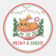 This adorable sticker captures the purr-fect holiday spirit! It features a cheerful, orange tabby cat comfortably nestled inside a festive, holly-decorated Christmas ornament. Flanked by snowy evergreen trees and topped with sparkling holiday lights, this design is completed with the playful text, "MEOWY & BRIGHT!" It’s ideal for decorating gifts, laptops, water bottles, planners, or adding a cute, seasonal touch to any surface. A must-have for cat lovers and anyone who enjoys whimsical holiday cheer!