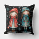 Whimsical Christmas Girls in the Snow Throw Pillow Kissen