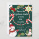 Invite your loved ones to a joyful Christmas celebration with this playful holiday design! Featuring snowmen, stockings, candy canes, cookies, and falling snow on a deep green background, this invitation sets the perfect tone for festive fun. Ideal for family gatherings, kids’ parties, and seasonal events.