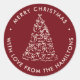 Send warm holiday greetings with these modern Christmas stickers featuring a hand-drawn cream Christmas tree adorned with playful bows on a rich cranberry background. Your custom greeting and family name encircle the tree, creating a cozy yet sophisticated design that stands out beautifully in seasonal mail. Perfect for sealing holiday card envelopes, gifts, and party favors, these stickers add a festive, personalized touch to your Christmas correspondence and celebrations.