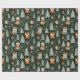 Whimsical Christmas Tree with Red Fox Dark Green Geschenkpapier