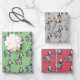 Whimsical moderne Hand illustriert Zebras mit Weihnachtsmannmützen auf drei verschiedenen Farbhintergründen.