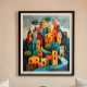 Whimsical City Modern Folk Art Ölgemälde Poster