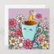 Whimsical Cup of Warm Coffee and Blume