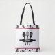 Bezauberndes, Whimsical Customizable Shopping Tote Tasche. Die Rückseite ist mit Namen, Titel oder Auswahl anpassbar. In Schwarz und Weiß mit rotem Akzent. Niedlich, Küchendesign. Ideal für Shopping und Umgebung.