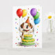 Whimsical Dog Party Hat Cake Balloons Birthday Karte
