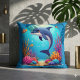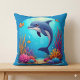 Whimsical Dolphin in einem lebendigen Korallenriff Kissen