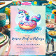 Lassen Sie sich bei Ihrem nächsten Party mit dieser köstlichen und skurrilen Geburtstagsveranstaltung des Pools verwöhnen! Dieses niedliche Einhorn, das auf einem Regenbogenwasserschwimmbecken schwimmt, eignet sich perfekt für eine lustige Sommergeburtstagsfeier. Die lebhaften Farben und das spielerische Thema machen es zu einem idealen Ort für ein Party im Mädchenpool. Personalisieren Sie die Einladung mit allen Party-Details, um ein magisches Geburtstagserlebnis zu schaffen. Ideal für Einhornliebhaber und ideal, um eine Touch der Verzauberung zu Ihrem besonderen Tag hinzuzufügen!