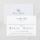 Whimsical Hand gezogen Doodle, Hochzeit rsvp Karte mit Diätbeschränkung/Allergie Note. Französisch Blaue Typografie mit Doodle Akzenten und Koordination hellblauer Streifen Muster Rückenlehne.