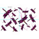Whimsikale lila, rosa und schwarze Libellen mit Wirbel verstreut. Drachenfliegen nach Maß entworfen von Sandra Foster ©, Sandra Foster Designs. "Libellen, "whimsical, "whimsical dragonflies," farbenfrohe Libellen, "insect," Libelle, "dragonfly art," insektenkunst, fliegendes Insekt, "lila und schwarze Libelle, "sandra care.