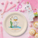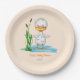 Bezaubernde Babydusche mit einer Abbildung einer Babyente in einem kleinen Teich oder einer Leckerei. Ideal, um Ihr Baby Duschgeschirr zu ergänzen. Illustriert und entworfen von Patricia Alvarez.