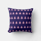Auf diesem dunkelblauen Kissen erscheint ein Muster hellrosa Weihnachtsbäume.