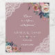 Whimsisches Design mit zarten staubblauen, staubigen Blumenbouquets in der Rose, einem Blumenspalter, Spitzen-Ecken, auf einem staubigen Hintergrund der Rose: auf der Rückseite sind Braut- und Bräutigam-Initialen. Als Vorlage ist es einfach, Ihre Informationen hinzuzufügen, Schriftart zu ändern, Farben. Für passende Artikel, besuchen Sie bitte meine Dusty Rose Blume Collection.