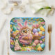 Description bring joy and colour to your Easter celebrations with this delightful design featuring an adorable bunnies surrounded by vibrant decorated eggs flowers and playful details. This artwork is perfect for party plates cups napkins and all your festive table wear the bright pastel colours and charming illustration create a cheerful fun atmosphere that everyone will love ideal for family gatherings Easter brunches