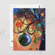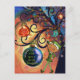 Spread a truly whimsical holiday greeting with this artistic Christmas postcard, perfect for mailing to all the little ones on your list! The front showcases a vibrant, watercolor-style illustration of a happy elf holding a gift and a sweet little blue bird perched on a glistening ornament. The colorful, sparkling, swirly tree background makes this a unique and memorable piece of mail.