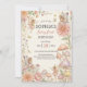 A whimsical fairy garden birthday invitation featuring enchanted woodland sprites with butterfly wings, watercolor peonies and dahlias, and charming patterned mushrooms in soft pastel tones. Perfect for little ones celebrating a magical 1st birthday with an enchanted garden theme.