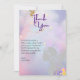 Schicken Sie eine Dankesbotschaft, die genauso magisch ist wie das Party! Diese bezaubernde Dankeschön-Karte hat den gleichen skurrilen rosa und lila Himmelshintergrund, mit einer anmutigen Fee-Silhouette und funkelnden Akzenten. Es ist der perfekte Weg, dass Ihre Kleinen sich bei allen Freunden und der Familie bedanken, die mit ihnen gefeiert haben. Diese Karte ist so konzipiert, dass sie perfekt zu unserer Whimsical Fairy Birthday Invitation passt, sodass es einfach ist, ein zusammenhängendes Party-Set zu schaffen.