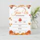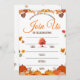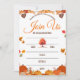 Celebrate the beauty of autumn with this charming invitation design featuring a vibrant fall tree centerpiece, surrounded by colorful leaves and a border of pumpkins and berries. The whimsical illustrations capture the essence of harvest season, with warm orange and red tones for a cozy feel. Perfect for fall gatherings, harvest parties, or seasonal celebrations, this template includes easy-fill blanks for date, time, place, details, and RSVP to make planning effortless and festive.