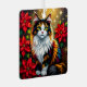 Cute Christmas cat themed ornament with a beautiful fluffy calico cat and red poinsettias with a gold background. On the back you can add your own custom message.
