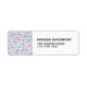 Adressetiketten mit einem Muster mit einem lustigen sommerlichen Ambiente. Rosa Flamingos und Ananas Set auf einem hellblau gestreiften Muster mit Blätter und Herzen herum.
